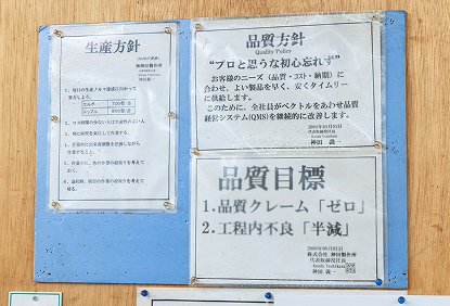 品質管理をおこない、加工品の画像検査を欠かさず行います。また、不良品については原因の内訳を集計し、定期的に対策を講じています。工場内では5S活動を行い、常に整理整頓を心がけます。